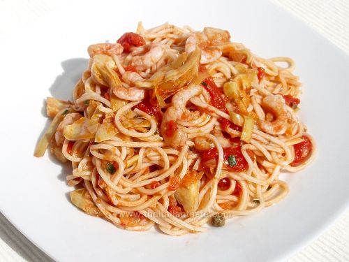 Taglierini con carciofi e gamberetti