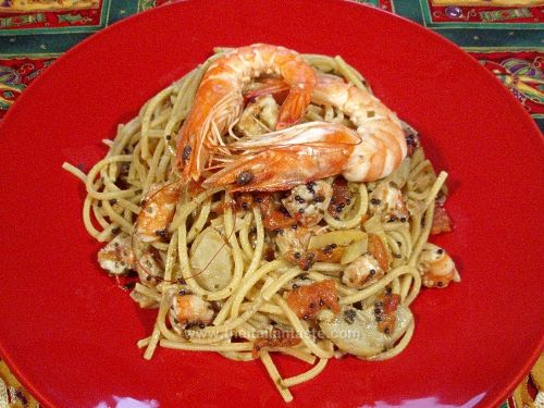 Linguine con scampi e frutti di mare